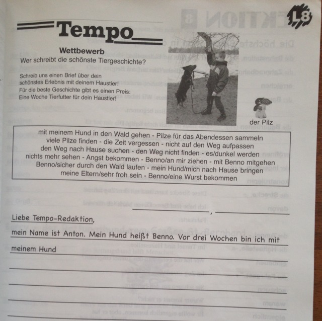 Heute ging ich mit meinem Hund in den Wald.Mein Hund fand viele Pilze und wir sammelten Pilze fur das Abendessen. Wir vergessen viel Zeit.Aber passte ich nicht auf den Weg auf.Mein Hund suchte den Weg nach Hause.Meine Eltern waren sehr froh,wann wir nach Hause mit Pilzen gingen.Benno bekam ein Wurst.