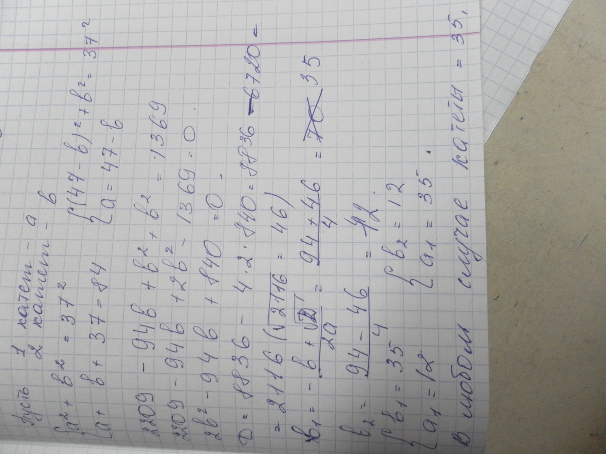 Последняя строчка: В любом случае, катеты равны 35 и 12