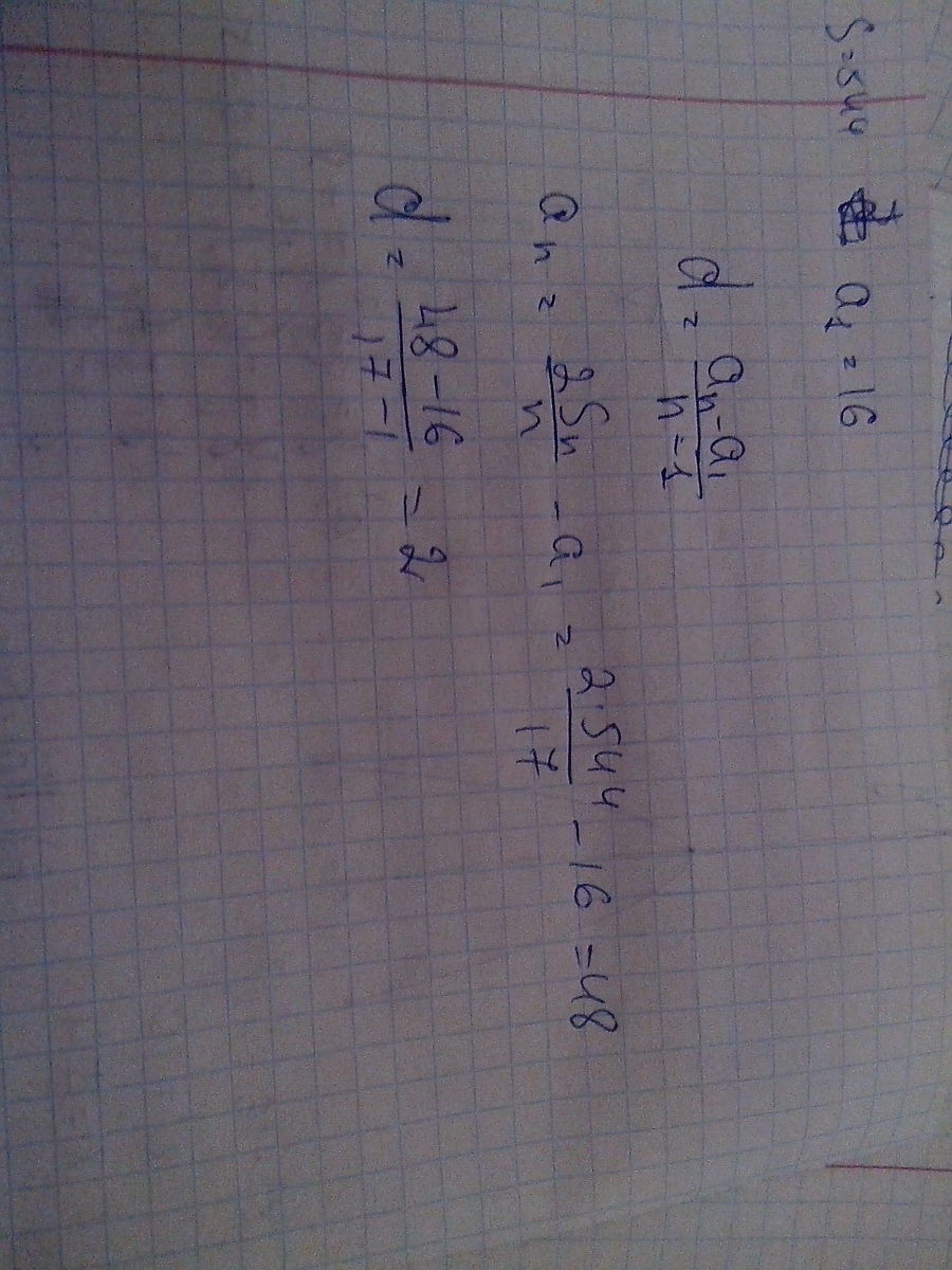 знайдіть різницю арифметичної прогресії, перший член якої дорівнює -16, а сума перших сімнадцяти членів дорівнює 544.Помогите