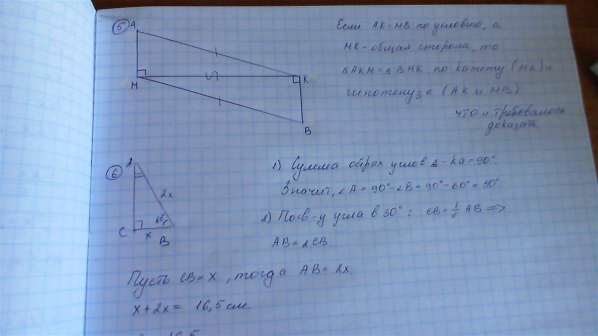 5.Точка А и В лежат по разные стороны от прямой, АМ и ВК-пендекулярны, к этой прямой. Доказать, что треугольник АМК= треугольнику ВКМ, если АК=ВМ