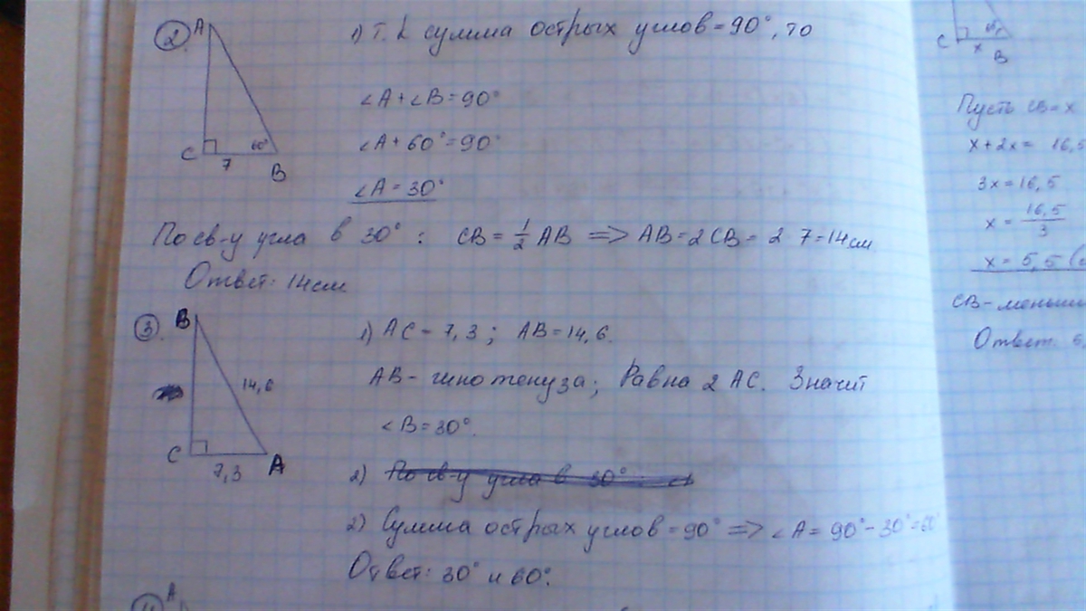 2. В треугольникеАВС уголС=90 градусов, улогВ=60градусов, Вс=7см, АВ-?