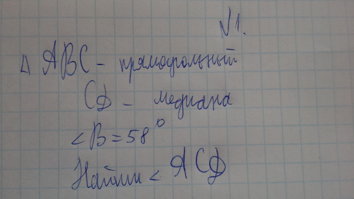 Итак. Получается, что угол С = 180 - 90 - 58 = 32. Тк СД - медиана, то также она бис-са. => угол АСД = 322=16