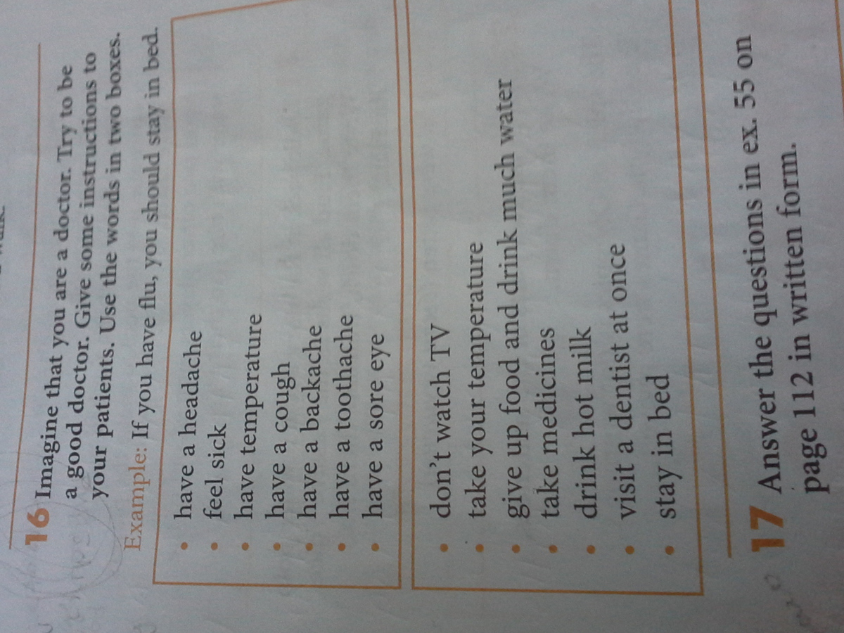 Представьте, что вы доктор. Будте хорошим доктором. Дайте рекомендации вашим пациентам. Используя слова