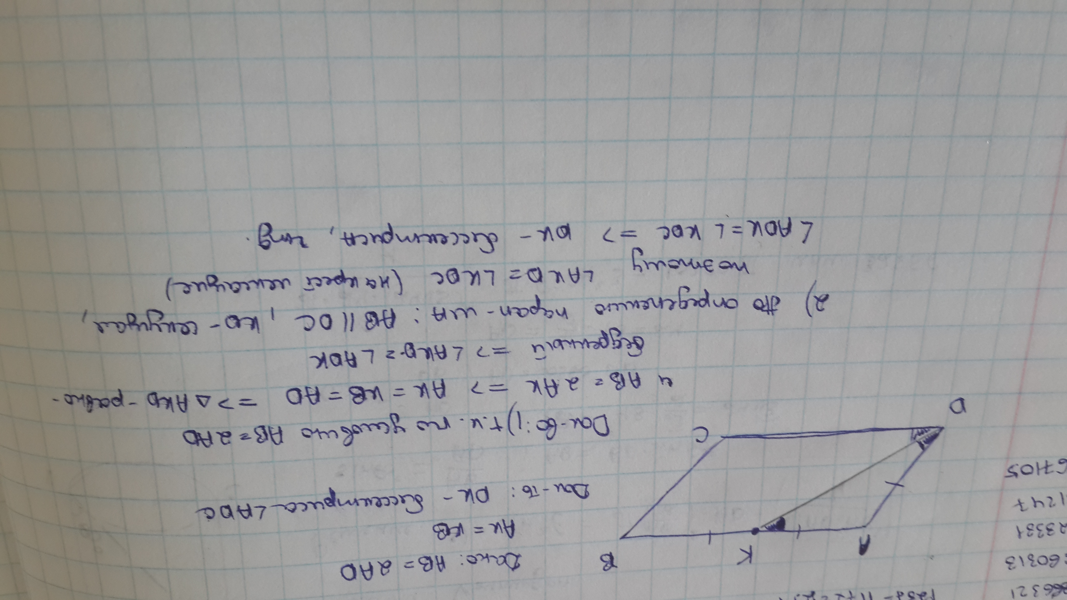Сторона AB параллелограмма ABCD вдвое больше стороны AD. Точка K — середина стороны AB. Докажите, что DK — биссектриса угла ADC.