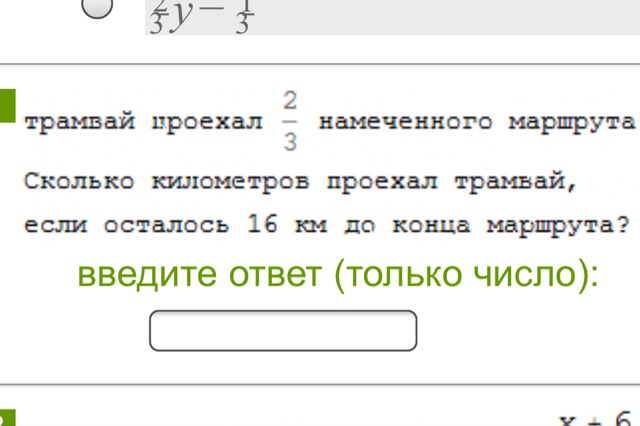 Пусть весь маршрут составляет х км. Тогда трамвай проехал 2/3х маршрута.