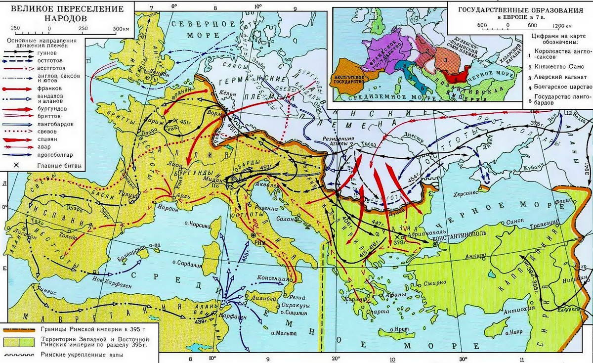 Различные германские племена такие ,как лангобарды ,франки ,бургунты,готы(если конкретнее остготы и вестготы),саксы,бургунды,свевы,а также вандалы(польское племя),бриты,гунны(возможно из кочевники,которые терроризировали Китай),аланы,авары и многие другие.