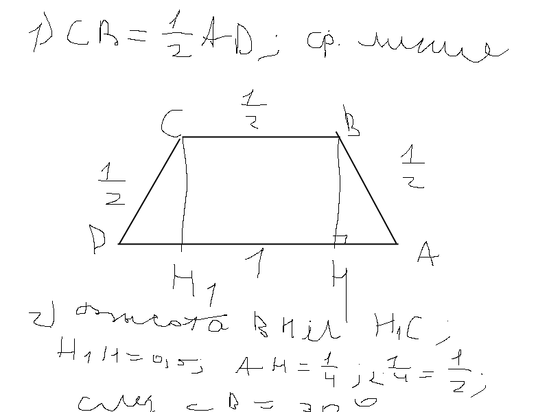 В равнобедренной трапеции ABCD AB=BC=CD=0,5 AD.Найти угол B.Помогите пожалуйстааа....Очень надо=)