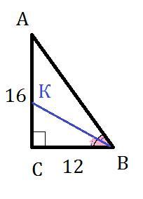 Катети прямокутного трикутника дорівнюють 12 см і 16 см. Знайти довжину бісектриси трикутника, що проведена з вершини більшого гострого кута.