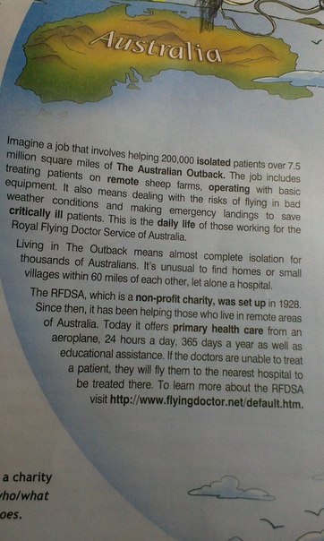 пациентов , свыше 7,5 млн. квадратных миль на австралийской глубинке. Работа включает в себя лечение пациентов на отдаленных фермах сна, работающих с основным оборудованием. Это