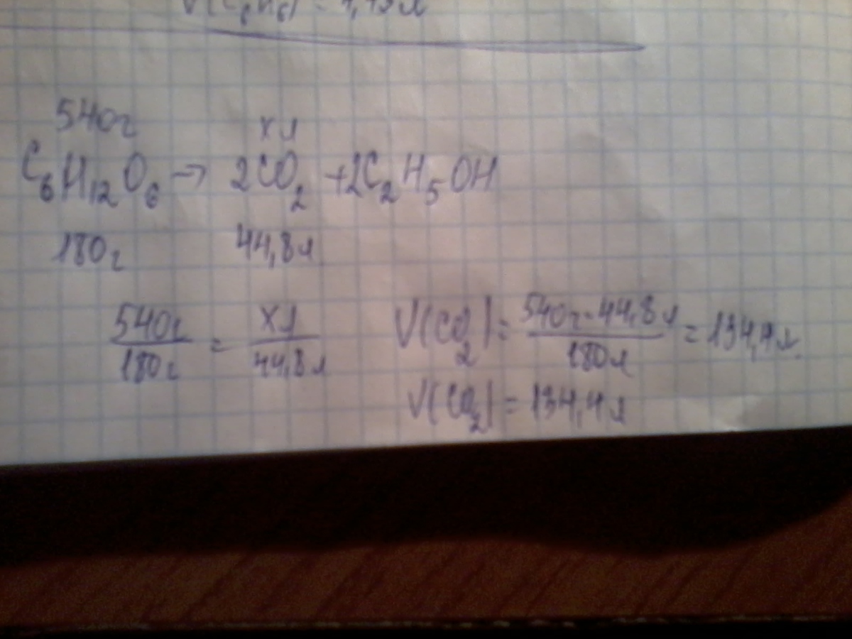 рассчитайте объём оксида углерода (IV), который выделится при спиртовом брожении глюкозы массой 540 г (н.у.)