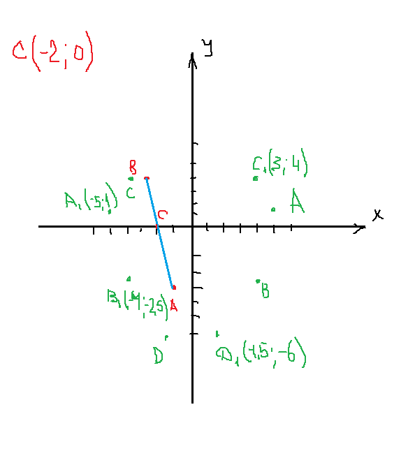 Постройте отрезок AB по координатам его концов и найдите координаты точки, в которой он пересекает ось x: