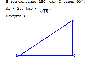 В треугольнике АВС угол С равен 90 градусов, АВ=20 и tgВ=1/на корень из 15.