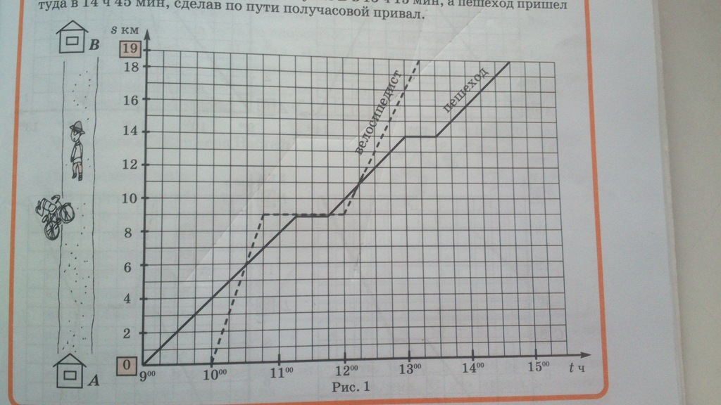 "Придумай вопросы по графикам движения на рис. 1 и ответь на них."