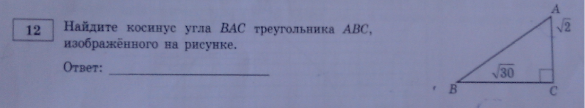 2)находим косинус: cosВАС=АС/АВ;cos=√2/√32 сокращаем на два и получаем cos=√1/√16 выносим одну шестнадцатую из под корня и получаем cos=1/4=0,25