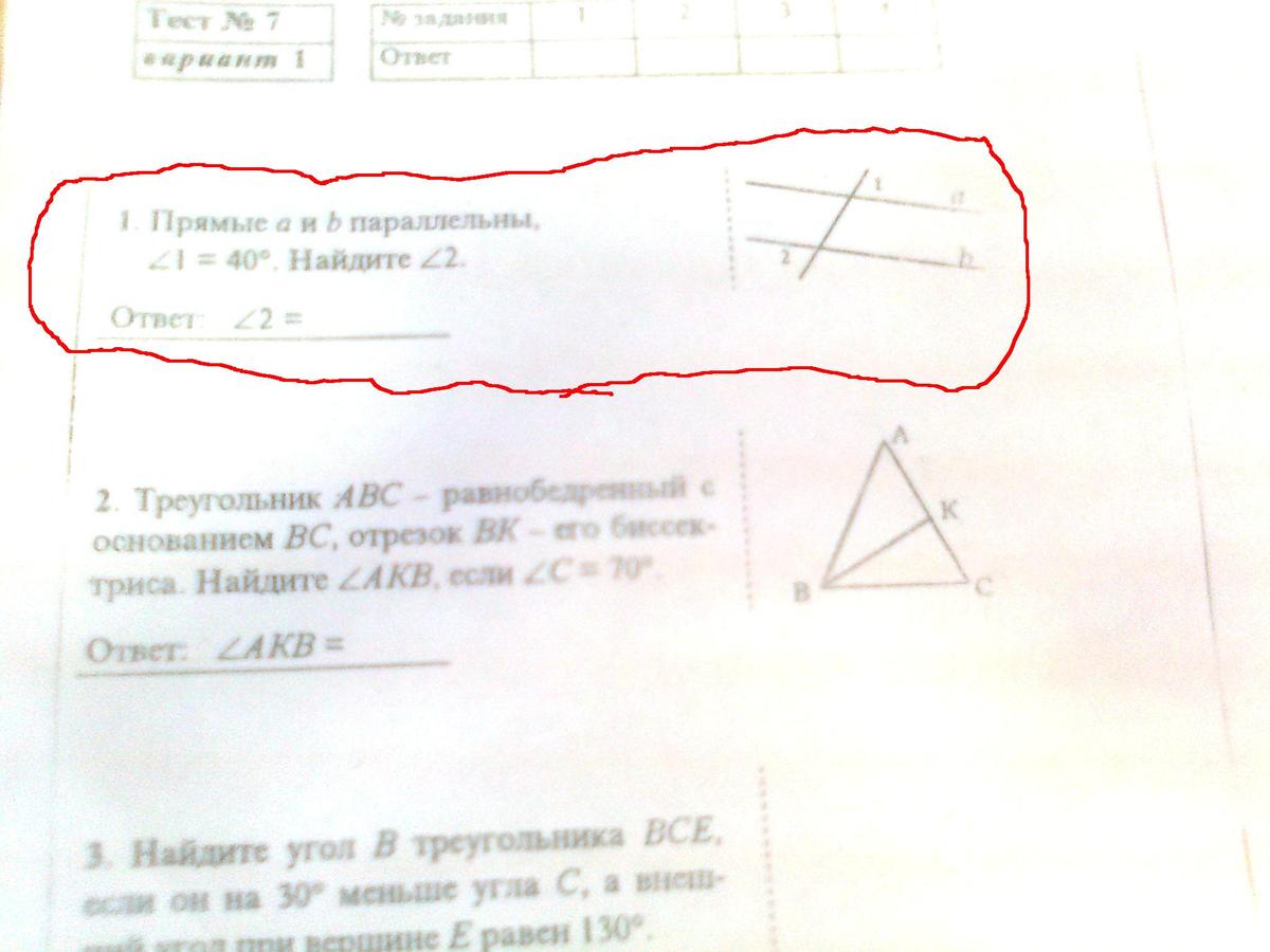 так как прямые паралельны а угол 1 равен 40 градусов..то угол 2 тоже 40