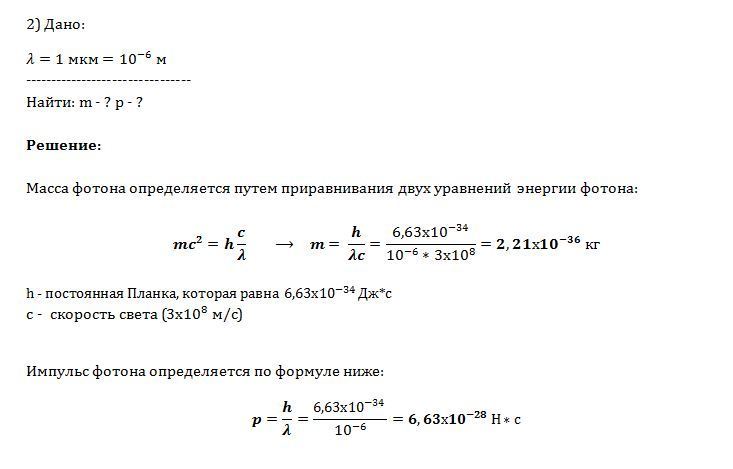 1) Определите энергию связи ядра атома дейтерия. 2) определите массу и импульс фотона для излучения с длиной волны 1 мкм.