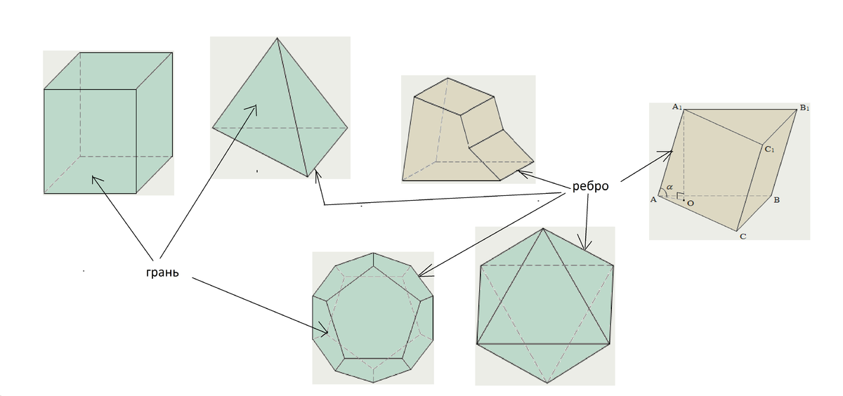 Каждый плоский многоугольник ( треугольник, квадрат, пятиугольник или фигура с другим количеством сторон) - в многограннике является гранью.