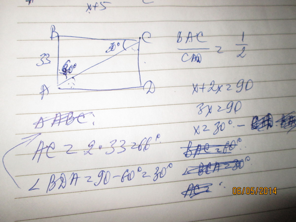 1.В прямоугольнике диагональ делит угол в отношении 1:2, меньшая его сторона равна 33. Найти диагональ данного треугольника.