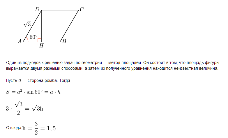 В ромбе ABCD диагональ CA равна 3 см, а угол BCD - 60 градусов. Найдите высоту ромба.ПОМОГИТЕ ПОЖАЛУЙСТА .За ранее спасибо))))