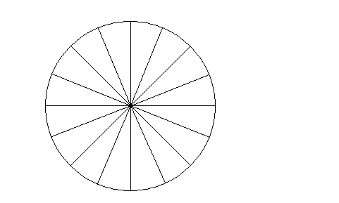 Начертите окружность, разделите его на 16 частей. Сделать это несложно: проведите 2 диаметра, перпендикулярных друг другу, и далее делите каждый сектор диаметром пополам, потом ещё раз пополам (см. вложение 1).