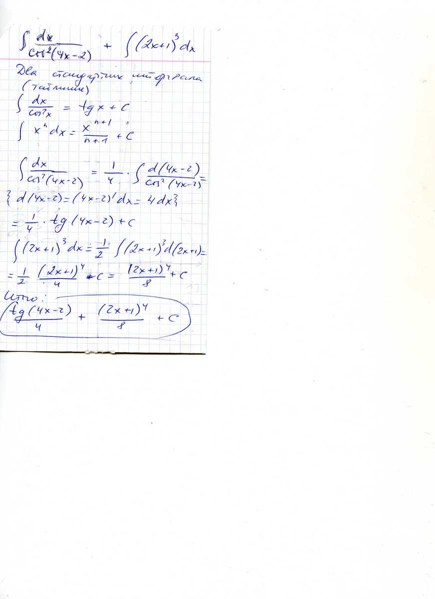 ∫ dxcos²(4x-2) + ∫ (2x +1)^3 dx
