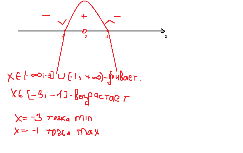 Исследуйте функцию y=(3-x^2)/(x+2) на монотонность и экстремумы