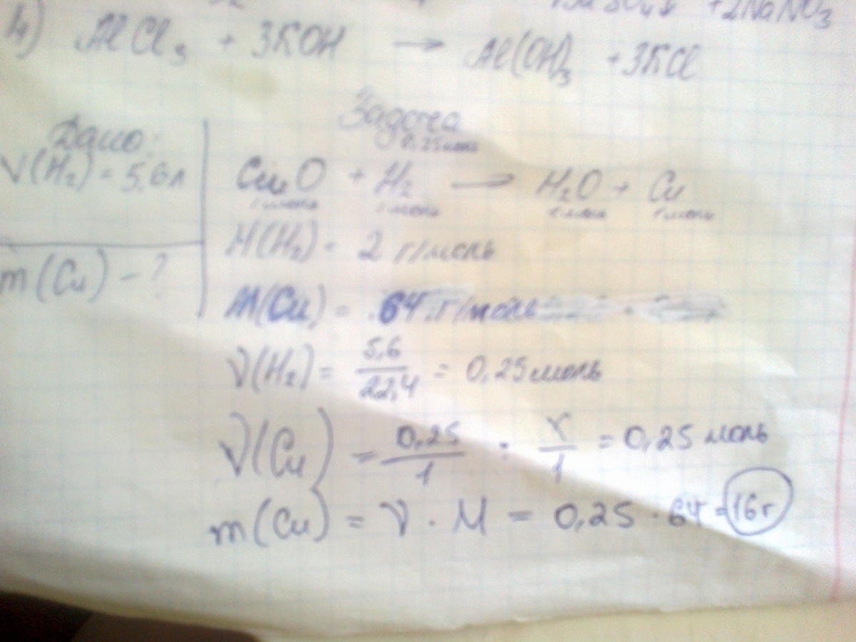 Какую массу меди можно получить в результате реакции замещения между оксидом меди(2) и 5,6л (н.у.) водорода? Если можно то полностью с решением