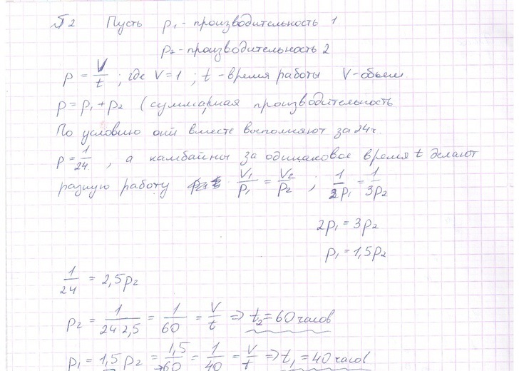 Два комбайна, работая совместно, могу убрать урожай с участка за 24 часа. Если бы каждый комбайн работал отдельно, то первому, чтобы убрать урожай с половины участка, потребовалось бы столько же времени, сколько второму с 1/3 участка. За сколько часов смог бы убрать каждый комбайн весь урожай, работая отдельно?