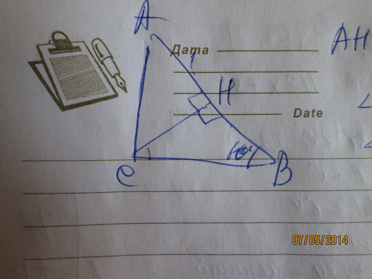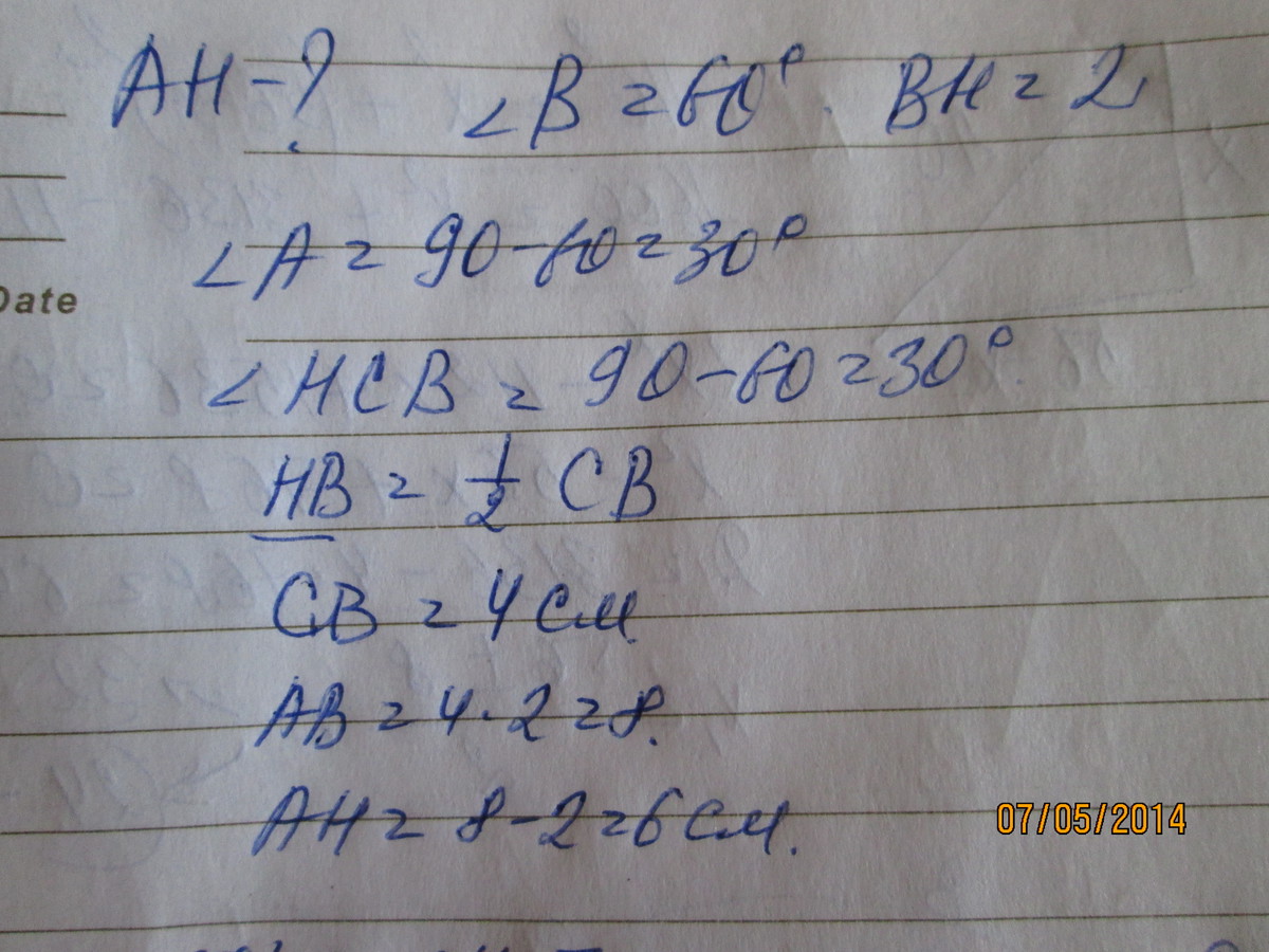 Найдите HA, если уголB=60 градусам, BH=2 см.