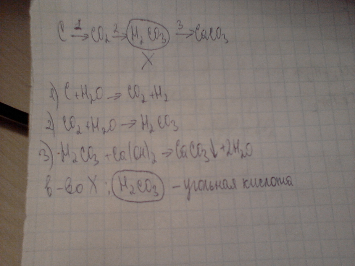 C -> CO2 -> X -> CaCO3