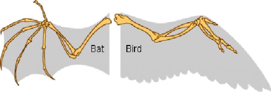 1. Крыло птицы покрыто перьями, крыло летучей мыши кожистое