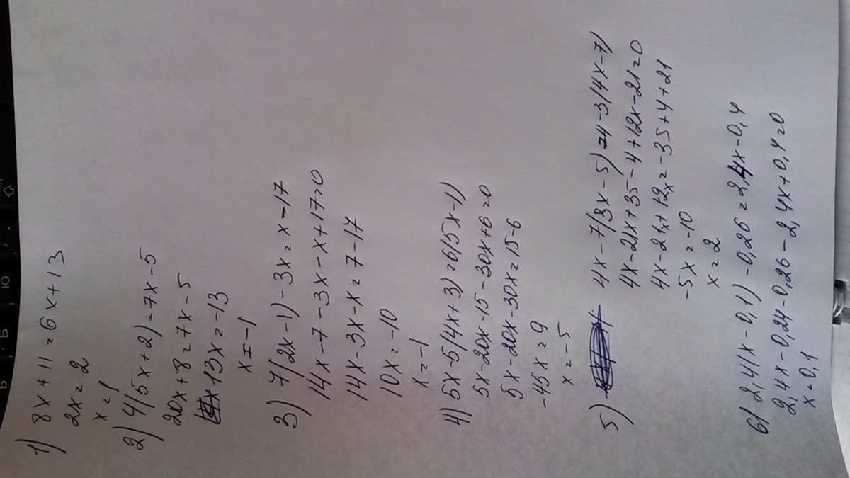 4)5х – 5(4х + 3) = 6(5х – 1)