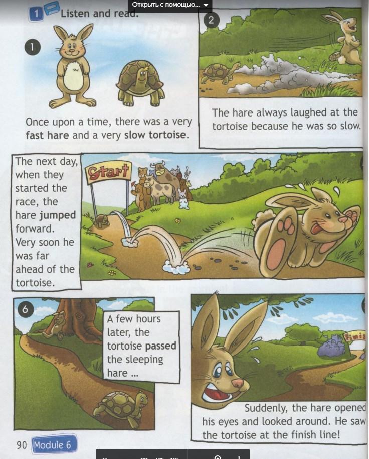 Переведите пожалуйста текст Заяц и черепаха. Учебник 4 класс Н.И. Быкова, М. Д. Поспелова - стр. 90 - 91, (Модуль 6).