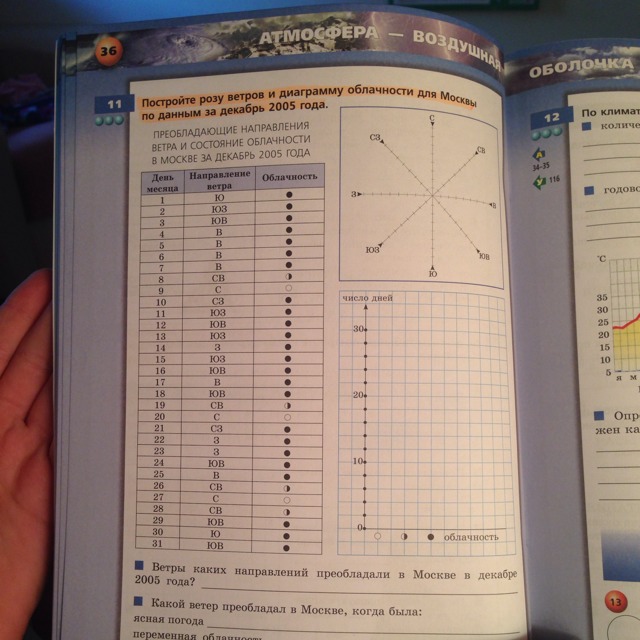 Постройте розу ветров и диаграмму облачности для Москвы по данным за декабрь 2005. Помогите пожалуйста^^