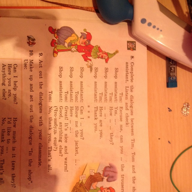 слова которые не видно в задании the shop в первом предложении the trousers?