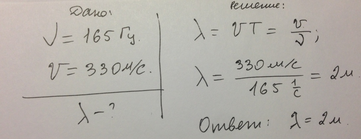 Волна с чистотой колебаний 165 Гц распространяется со скоростью 330 м/c.Какова длина волны (м)?