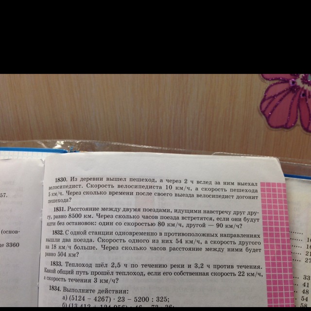 10-5=5км/ч скорость сближения пешехода и велос-та