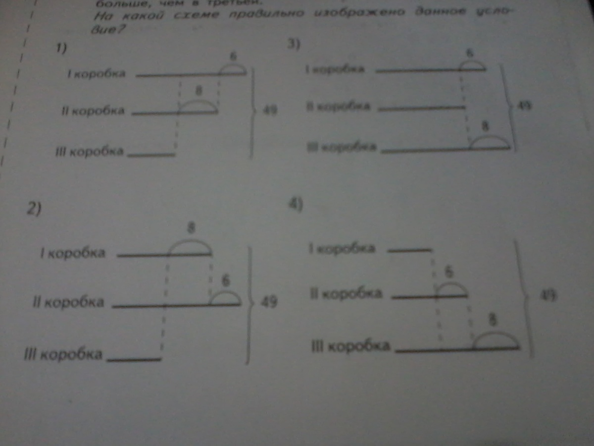 В трёх коробках лежат 49 карандашей. В первой коробке на 6 штук меньше, чем во второй, и на 8 штук больше чем в третьей.