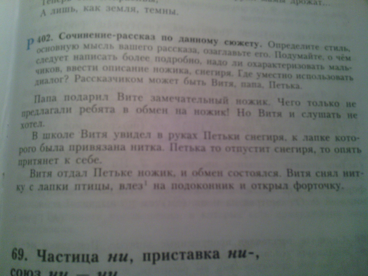 Домой я пришел грустный и расстроенный, я думал, что папа меня отругает и накажет за то что я обменял ножик на снегиря. Но случилось совсем иначе, папа меня даже похвалил: "Ты молодец, мне не за что тебя ругать, ты сделал доброе дело!" -- сказал папа.