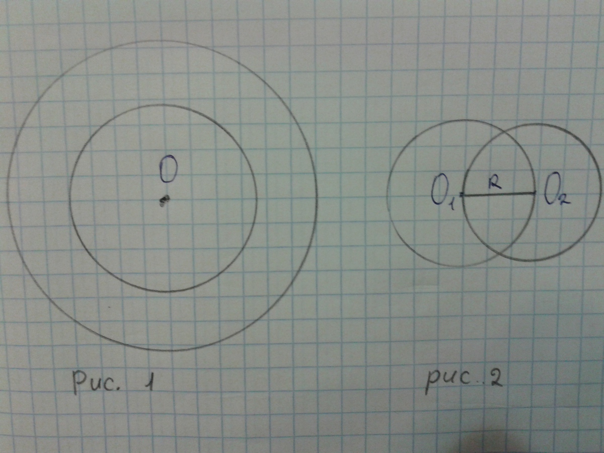 Начерти две разные окружности так , чтобы они имели: общий центр ; общий радиус.