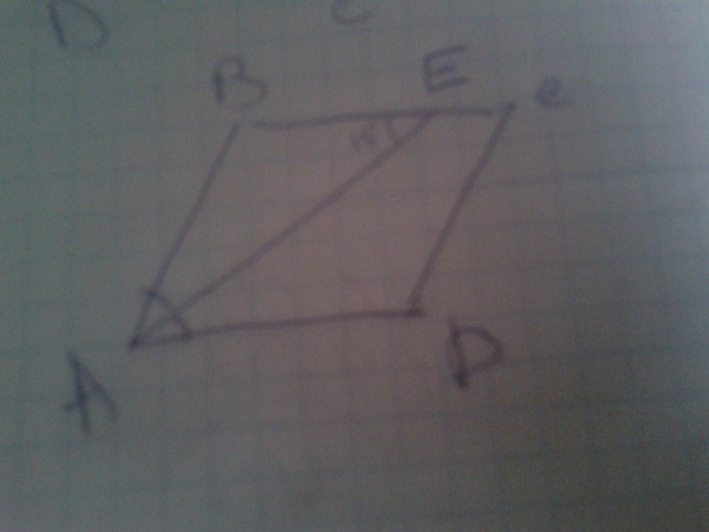 пусть угол пересечения биссектрисы и ВС будет точка Е. т.к это параллелограмм ВС параллельно АД. отсюда угол ВЕА=ДАЕ=ВАЕ=15. угол А=15+15=30.