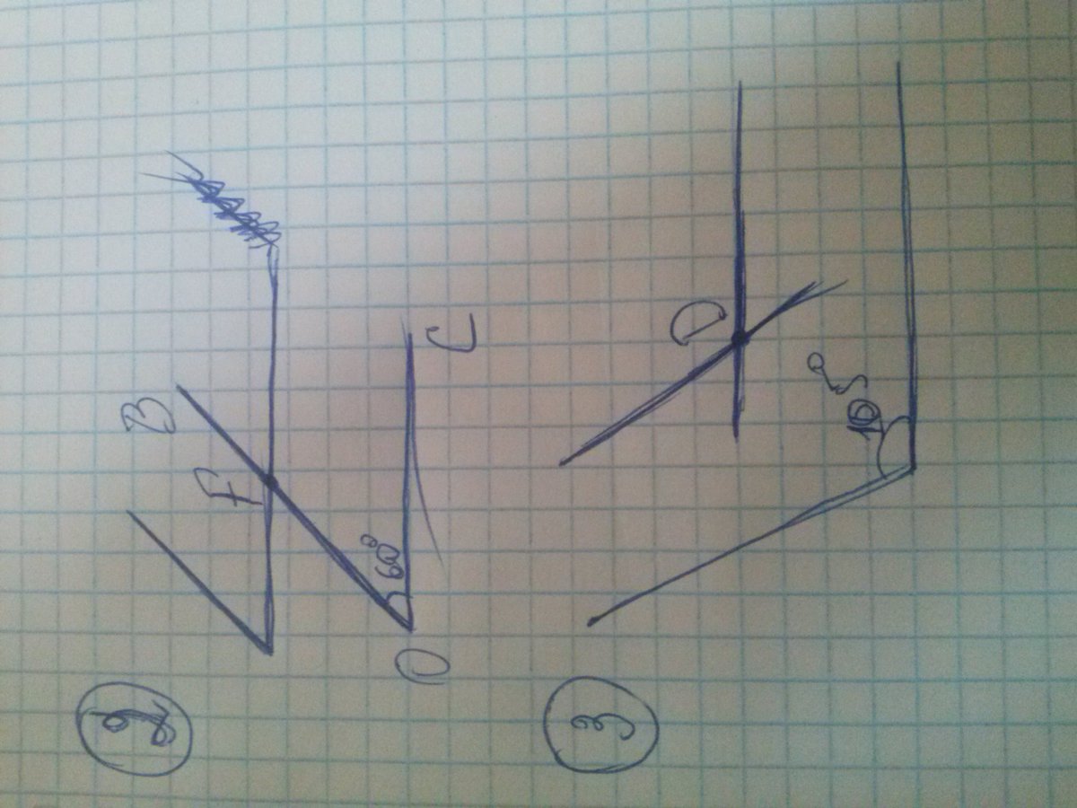 .2 Постройте угол ВОС, равный 60. Отметьте на стороне ОВ точку F и проведите через нее прямые, перпендикулярные сторонам углаВОС.