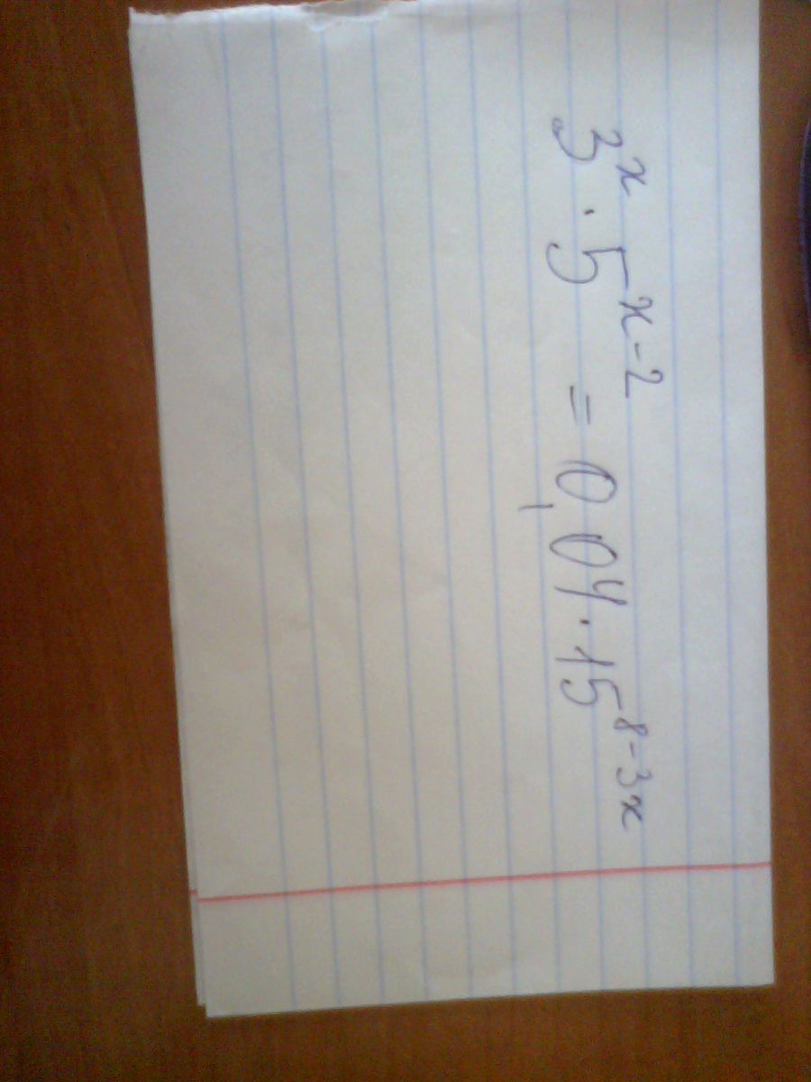 3^x*5^{x-2}=0.04*15^{8-3x}\\ 3^x*frac{5^x}{25}=5^{-2}*15^{8-3x}\\ 15^x=15^{8-3x}\\ x=8-3x\\ 4x=8\\  x=2