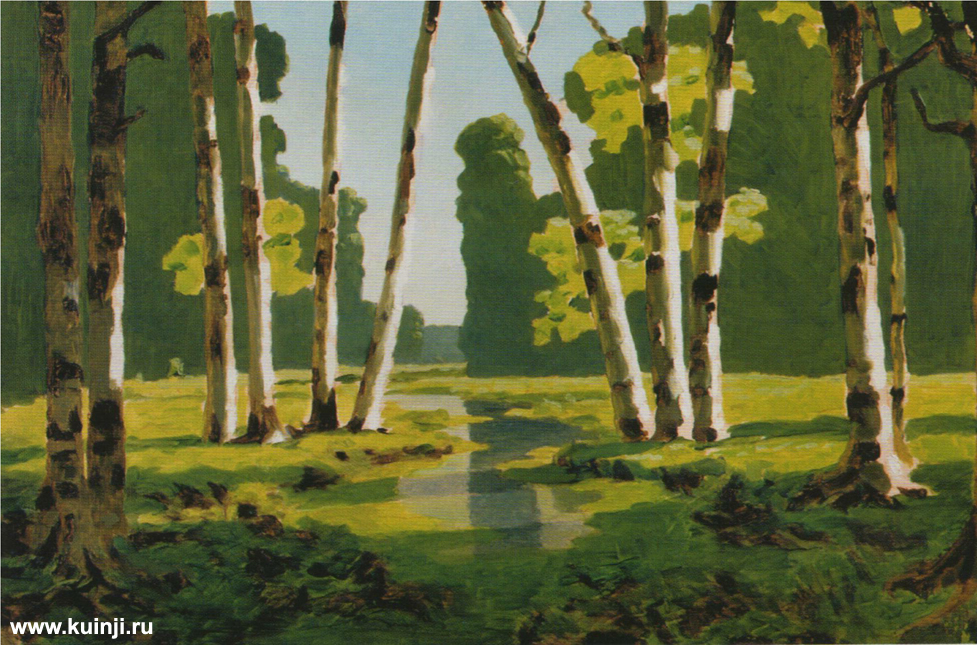 А.И. Куинджи-замечательный русский художник-пейзажист. Архип Иванович наисал множество замечательных картин но мы рассмотрим только одну под названием Берёзовая роща. Которую я сейчас вам опишу. Давайте влядимся! Посмотрите только! На некоторые берёзки падает золотистый лучик или даже не один. Два ствола сияют от света. Ёщё от ярких солнечных лучей листва становится очень красивой. Но есть и берёзы, которым не хватило солнца. У этих стволов тоже много красивого, например их красно-зелёная кора. Фоном для картины послужили тёмные-зелёные деревья с пышной кроной. А над этой густой рощей возвысилась голубенькая синева. Мне этот пейзаж понравился потому что он красочный и кажется очень живым