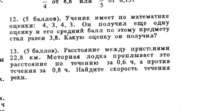 Расстояние между пристанями 22,8 км. Моторная лодка проплывает это расстояние по течению за 0,6 часов, а против течения за 0,8 часов. Найдите скорость течения реки, а точнее номер 13