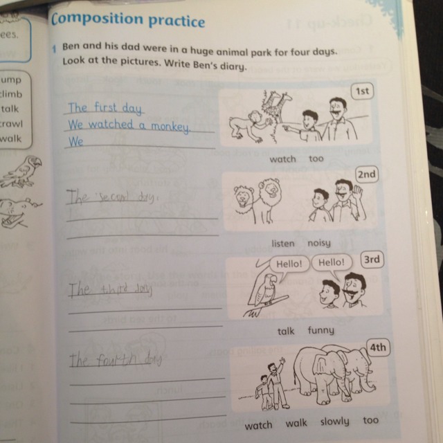 The third day we watched a parrot. We said hello.