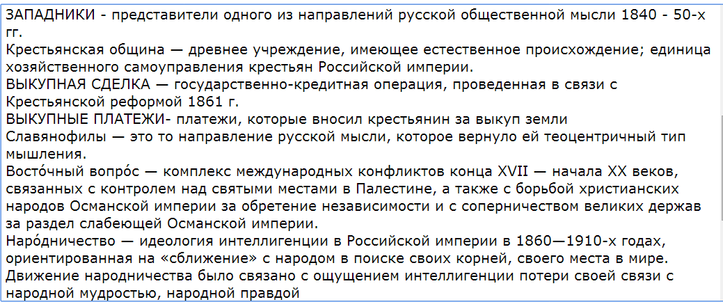 Дайте пожалуйста определение таким словам. Самодержавие, социализм, либерализм, временно обязанные крестьяне, пролетариат, буржуазия, западники, крестьянская община, выкупная сделка, выкупные платежи, славяно-филы, восточный вопрос, народничество, мануфактура, классицизм, владельческие крестьяне, припесные крестьяне