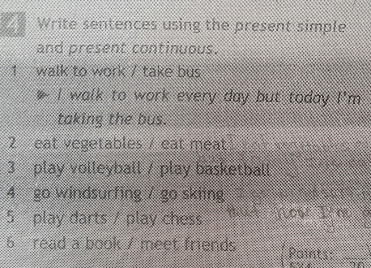 4) I go windsurfing every day bat today I am going skiing.