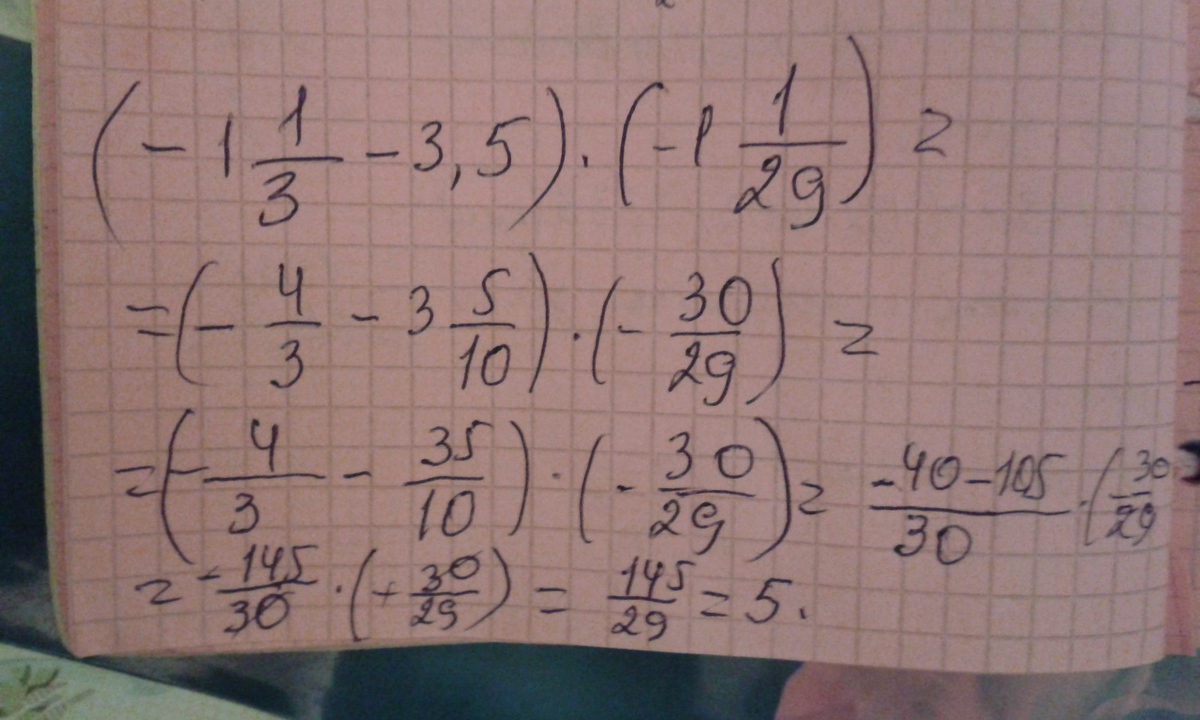 =(-4/3-35/10) * (-30/29)=((-40-105)/30) * (-30/29)=(-145/30) * (-30/29)=145/29=5