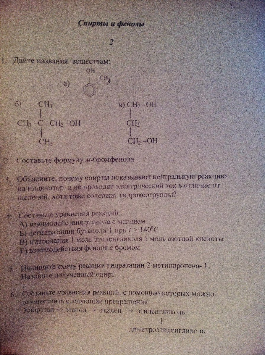 6. 1) Применяется не спиртовой раствор (который отщепляет галогеноводород), а водный (который замещает галоген на гидроксогруппу).